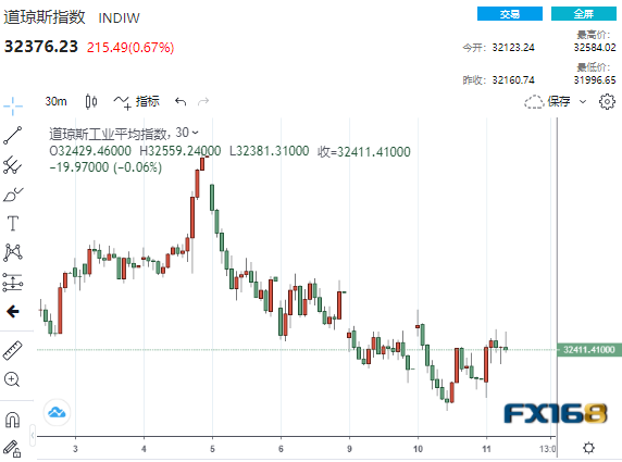 (道指30分钟走势图,来源:FX168)